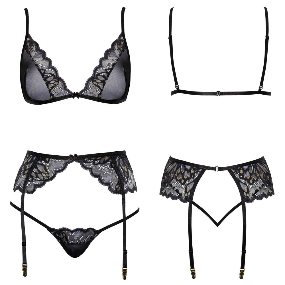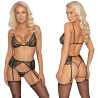 Kissable Bra, Suspender Belt & String Set Black