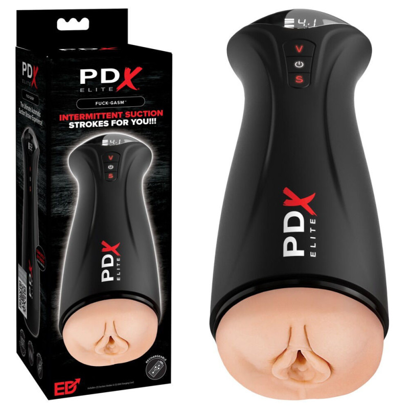 The extremely powerful and easy-to-hold Fuck-Gasm masturbator from PDX Elite is in a stylish, discreet design. It feels soft and realistic, and it has an exciting texture inside as well. It can also pleasure the penis with powerful vibrations and an intense suction function. The penis is automatically sucked into the masturbator and released again. Just like during an amazing blowjob! The thrilling vibrations on the glans intensify the sensations even more. This masturbator is perfect for hands-free stimulation at the push of a button – just lean back and enjoy!