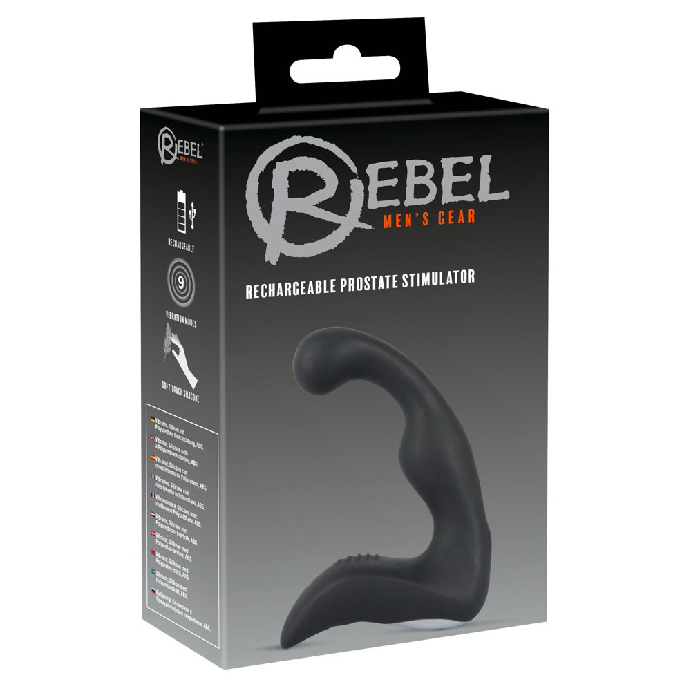 Flexible prostate vibrator with a curved tip, wavy shaft and a grooved perineum stimulator.