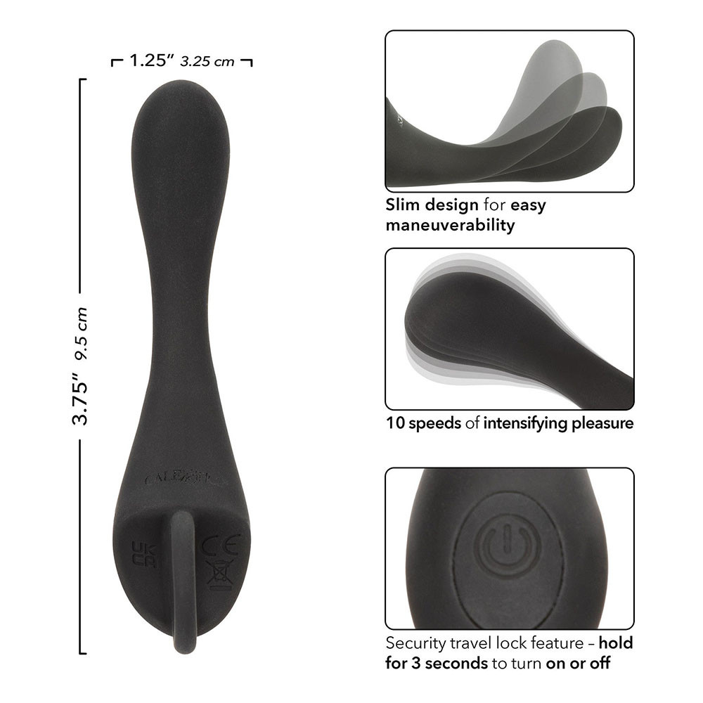 Embark on an unforgettable journey of pleasure with the Dr. Joel Kaplan Rechargeable Prostate Locator, expertly designed to hit just the right spot. This slim, sleek probe is tailored for those seeking precise stimulation, featuring an easy retrieval ring for enhanced control during play. Whether you're exploring solo or with a partner, this vibrator offers a seamless and comfortable experience. Equipped with 10 incremental speeds of vibration, the Prostate Locator allows you to escalate your pleasure at your own pace. Each setting is crafted to provide intense, focused stimulation that can be adjusted to match the rhythm of your desire.