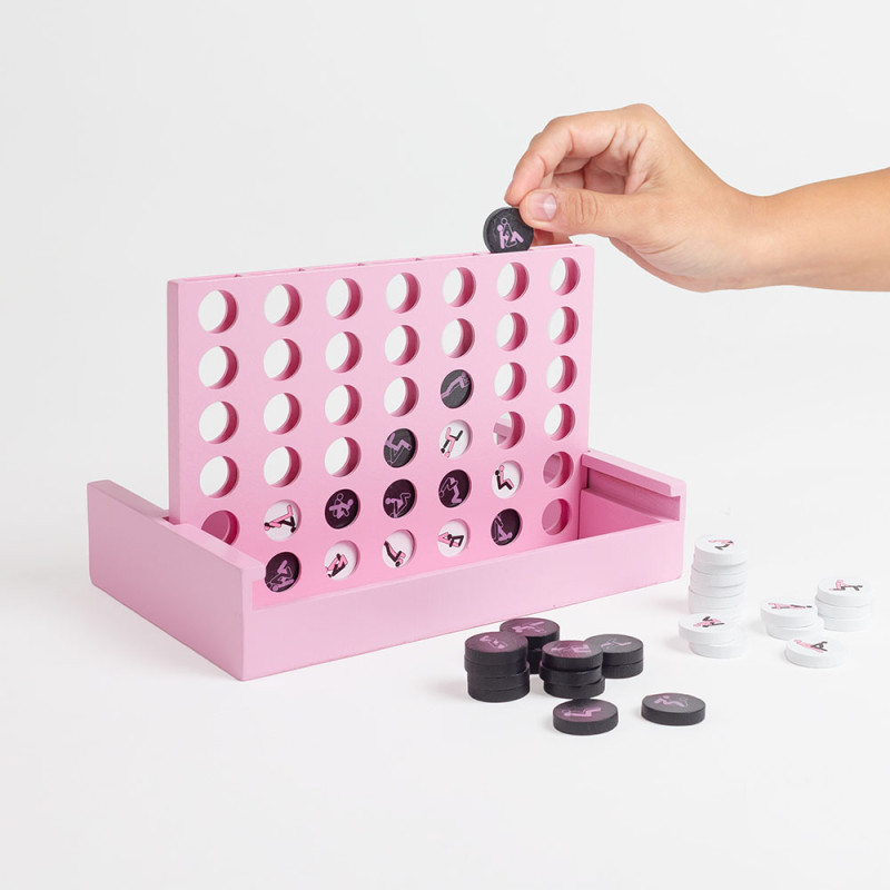 The aim of the game is to make Play4Sex (align 4 of your chips on the board vertically, horizontally or diagonally) while blocking your opponent from doing the same.