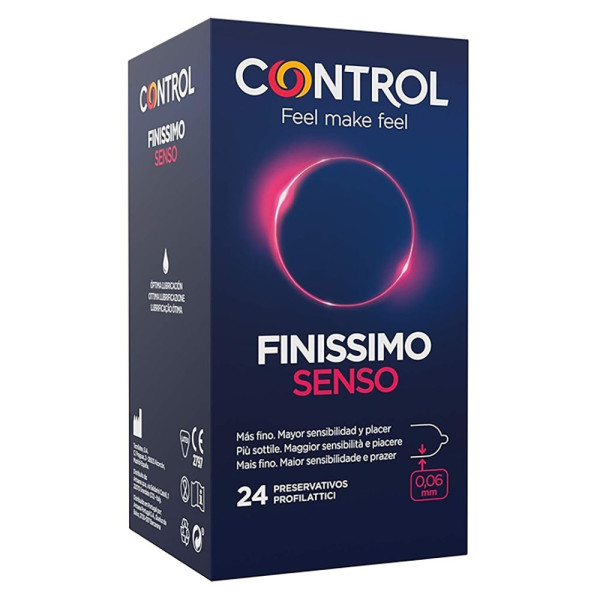 Finissimo Senso Condoms, thinner than the rest of the Control range, maximize every sensation of pleasure. Transparent and with a smooth surface, they are 0.06 mm thick and ensure a perfect fit thanks to the Anatomical Adapta shape.